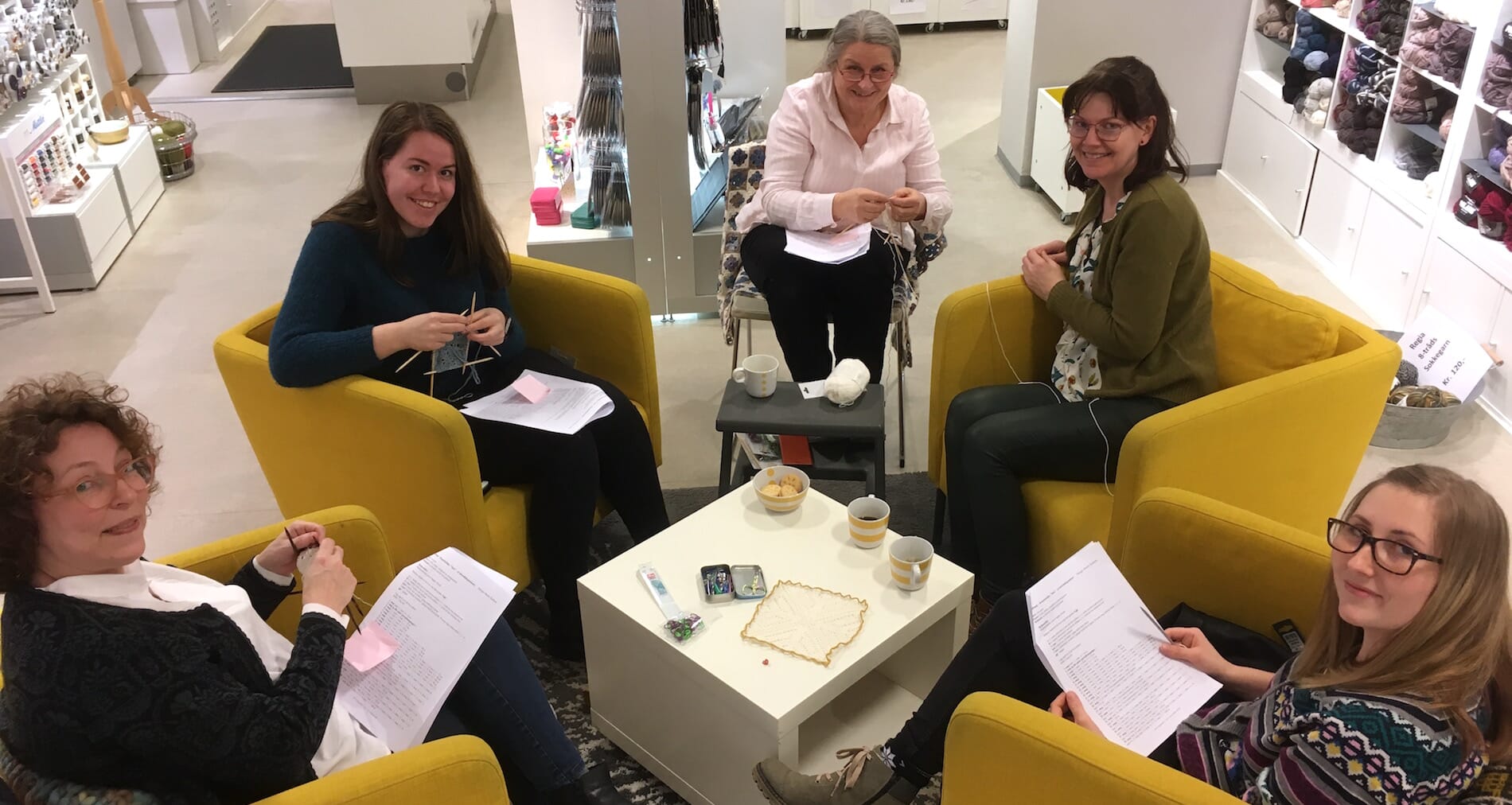 (Foto: Kursdeltakere på helgekurset Lace-strikk februar 2018)