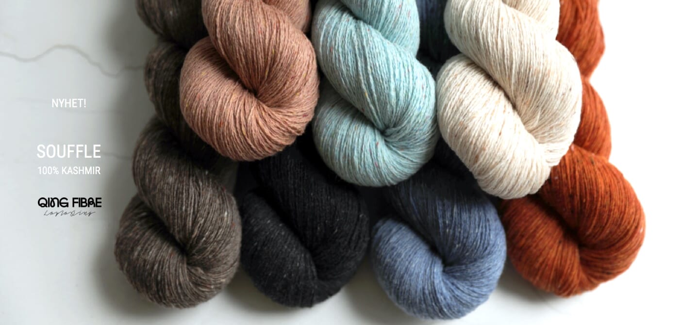 Fra Qing Fibre i London, har Layla Qing og hennes farge-team sendt oss den nyeste kvaliteten QING SOUFFLE i 100% kashmir, et vidunderlig mykt og lekker 4-trådet garn i en vakker fargepalett ispedd ørsmå fargedrypp som gjør plagget ditt helt unikt. Vi kjøper inn få bunter i hver farge, så her gjelder det å sikre seg raskt! 325meter/50g bunt.