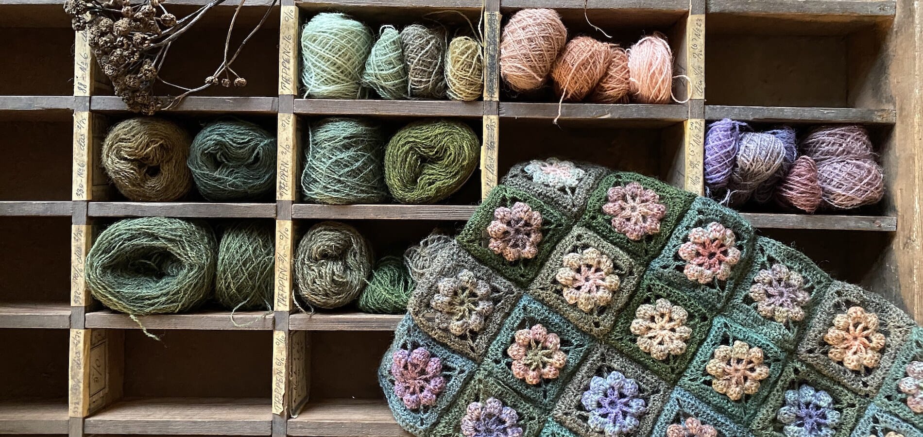 Min lidenskab for farvning med planter begyndte, efter at jeg arbejdede med plantefarvede tekstiler fra 1800-tallet. Det giver mig altid en stor forståelse for håndværket, når jeg selv afprøver håndværket og metoderne. Derfor begyndte jeg for 6 år siden at eksperimentere med at plantefarve mit eget garn. Jeg opdagede hurtigt de uendelige muligheder, håndværket indeholdte, og en ny verden åbnede sig for mig.