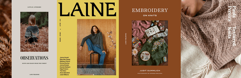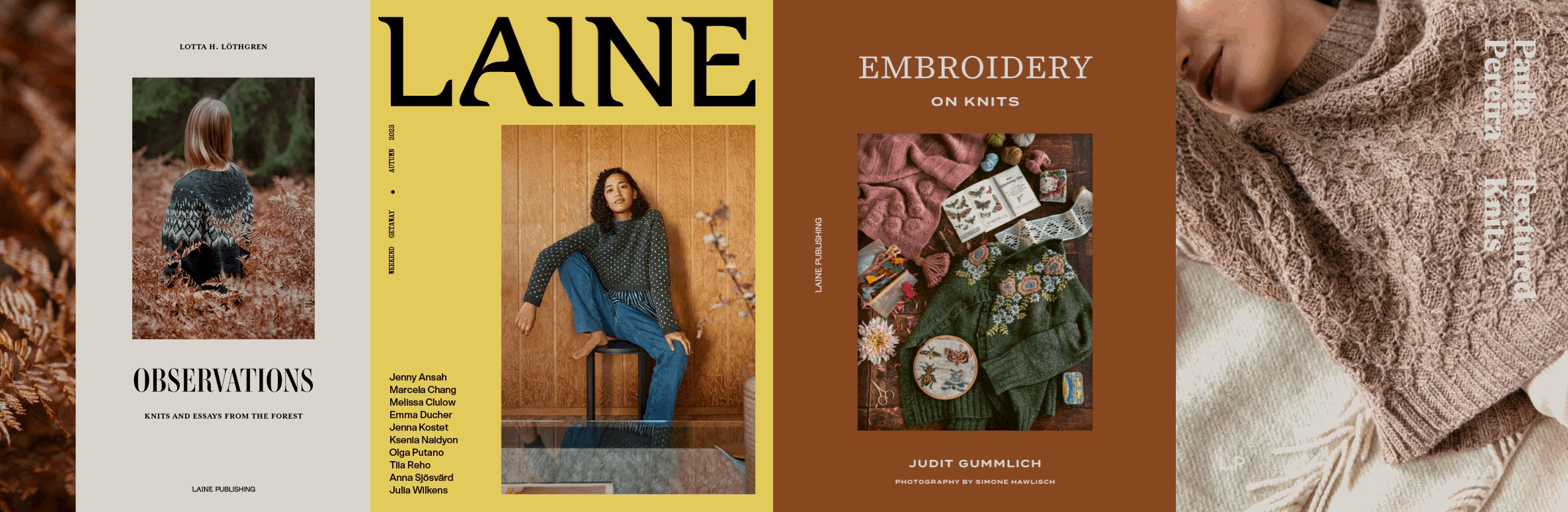 Rett før sommeren ble også Paula Pereira sin bok Textured Knits sluppet. Boken er en gjennomtenkt kuratert samling av moderne og tidløse håndstrikkede plagg, blant annet gensre, cardigans, sjal og et par sokker. De 20 fascinerende mønstrene har en rekke oppfinnsomme måter å kombinere forskjellige teksturer på, blant annet fletter, farger og broderi. Resultatet er en allsidig strikkekolleksjon som har fantastiske, men delikate elementer. I ekte Laine-stil er plaggene fotografert og presentert vakkert og skaper en publikasjon som lover å bli en ekte klassiker.