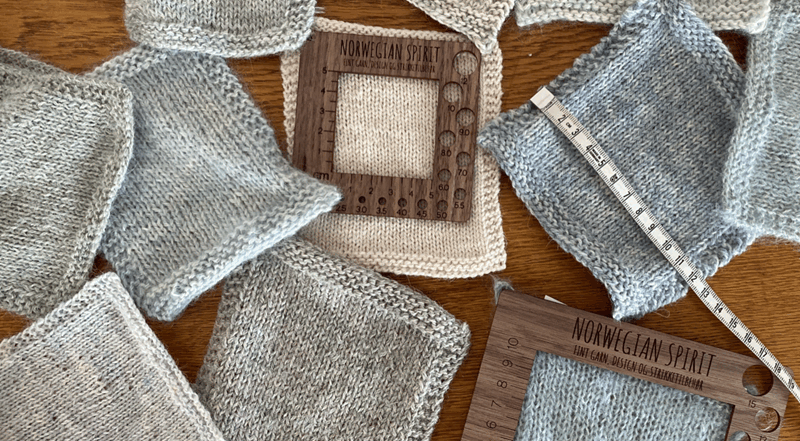 - Bytt til en halv pinnestørrelse tynnere, og strikk en ny prøvelapp.