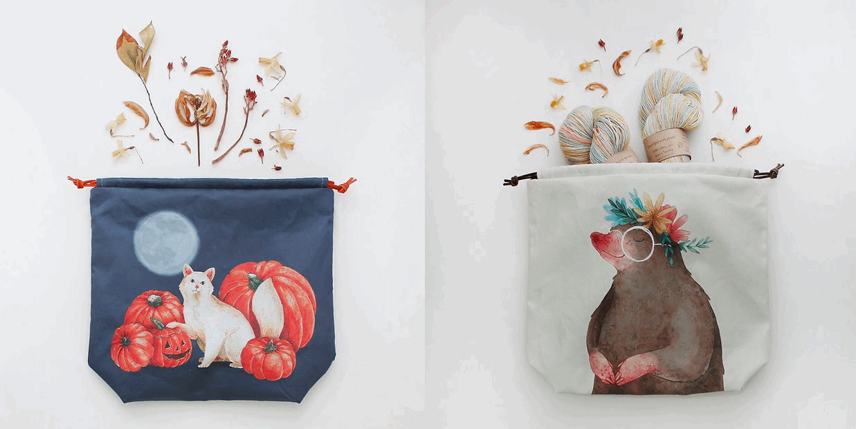 I tillegg til disse nydelige prosjektposene får vi også inn små vesker med glidelås i Minerva Halloween Cat, Dolores Mole, Amber Raven og Milo Raccoon (B15xH12 cm). Disse passer perfekt til ha smått tilbehør til strikketøyet i, eller til og med oppbevare bankkort, smykker og andre småting man trenger å ha med seg samlet i vesken.