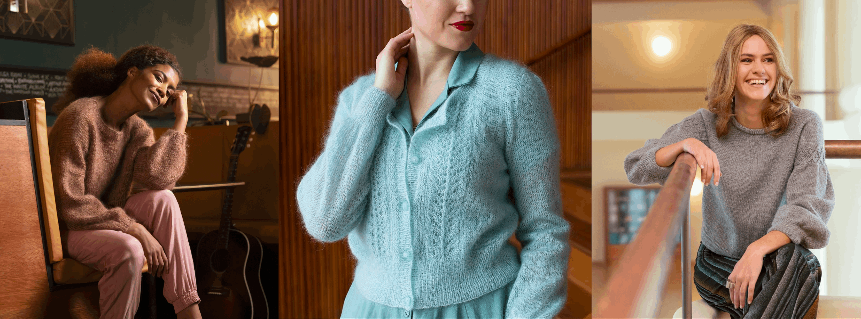 Lise er en fin og feminin cardigan som passer perfekt over en lett kjole eller en tynn skjorte. Cardiganen har både en liten smule puffermer og et fin hullmønster på forstykkene som gir designet en skjønn vintage-følelse. Lise strikkes i kun én tråd Filcolana Tilia og blir dermed et ekstremt lett og lekkert plagg. Du finner strikkepakke til Lise her.