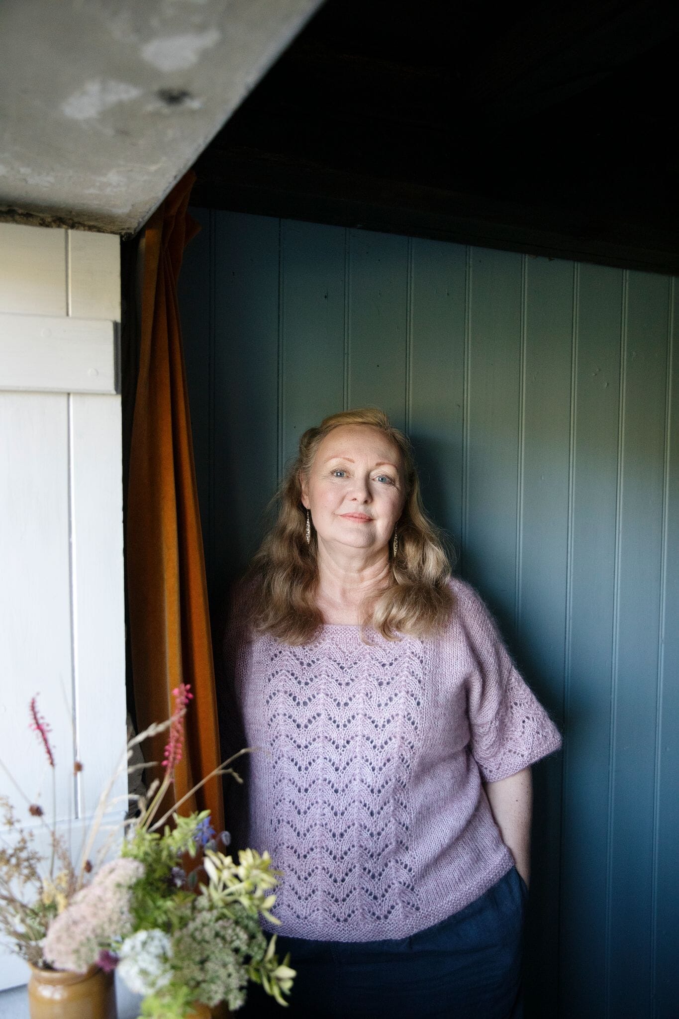 Susan Crawford er en britisk strikkedesigner og forfatter med sin egen håndfargede garnserie. Hun er kjent for sitt arbeid med å modernisere vintage strikkemønstre. Echoes er Susans åttende bok.