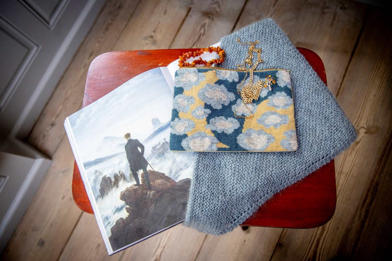 Bogens 36 opskrifter på strik og broderi er inspireret af tretten af Friedrichs kunstværker, der alle er gengivet i bogen. Caspar David Friedrich (1774-1840) lod sig især inspirere af himlen, havet og landskabet, som oftest blev gengivet voldsomt og dramatisk. Han studerede som ung på Kunstakademiet i København, og han holdt af at gå ture i Frederiksberg Have, som har den danske romantiks samlingssted Bakkehuset til nabo. Bakkehuset og dets smukke omgivelser er rammen om strikkebogens stemningsfulde billeder.