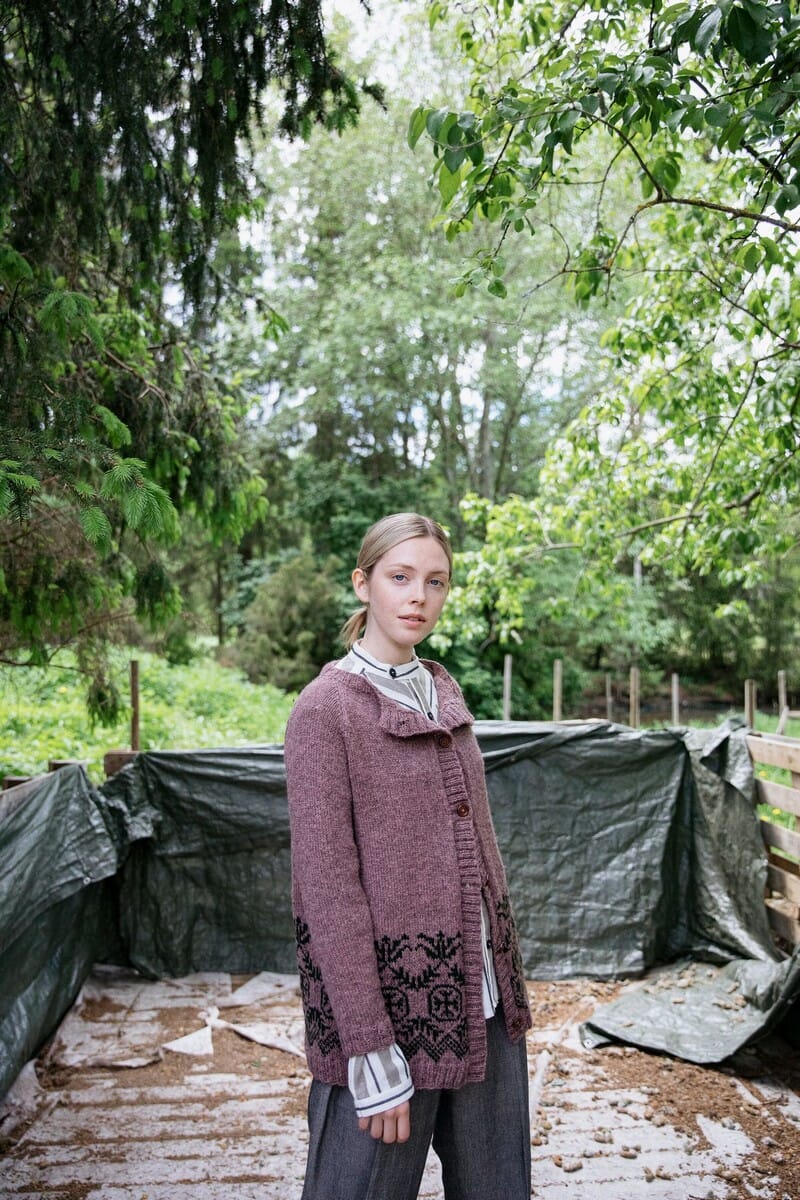 Jenna Kostet (@ihtiriekkoknits) er en forfatter og en strikkedesigner kjent for fortryllende mønstre, for eksempel Suolaulu-genseren som er laget av tusenvis av strikkere over hele verden. Hun har studert etnologi og folkloristikk og har publisert en rekke historiske romaner og barnebøker i Finland. I sine strikkedesign legger Jenna vekt på historiene, fortsettelsen av tradisjoner og kreativitetens glede.
