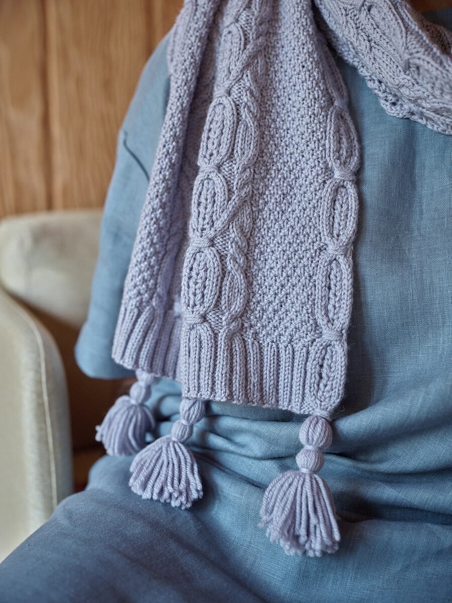 • 11 strikkeoppskrifter (både diagrammer og skriftlig veiledning følger med): 5 gensere, 2 cardigans, 1 slipover, 1 sjal, 1 lue og 1 par votter.