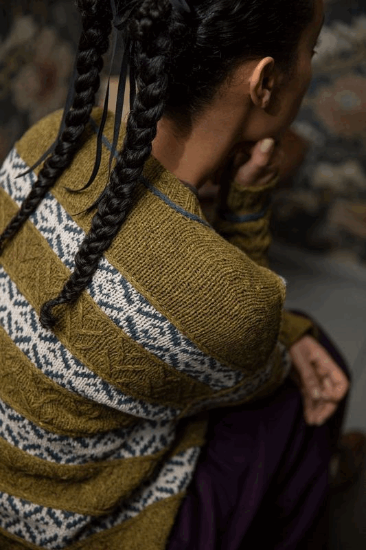«Bruk litt tid sammen med meg på å mimre, gå deg vill i dine egne minner og strikk nye inn i maskene på pinnene dine. Det er tross alt det strikketøy gjør - bærer minner med seg.»