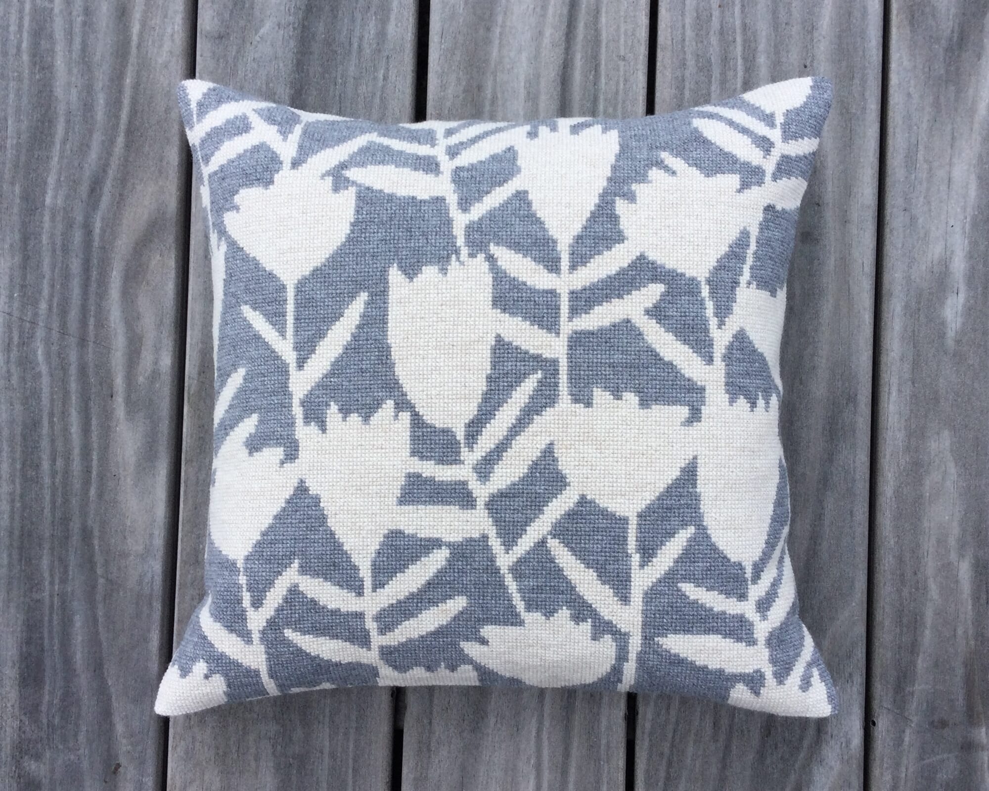 Baldyre Fynsk Forår Pude Broderikit er et stilrent design med en tvist; lekre grafiske design med uventede detaljer og motiv inspirert av naturen, som fortsatt er interessant å se på.
