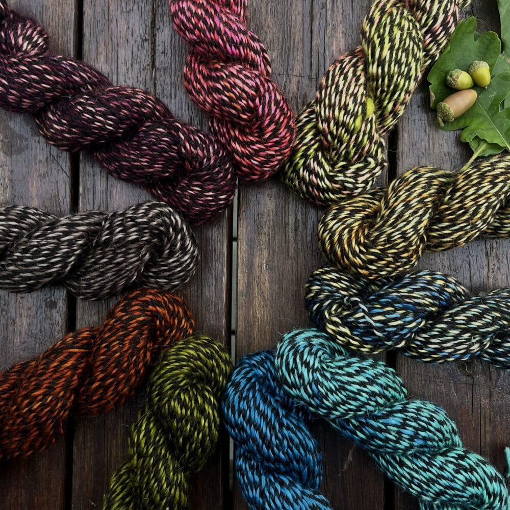 Disse nøstene er håndlaget til det ypperste - og alle nøster er unike. Det er veldig få av hver farge, da hvert nøste krever en håndfarget tråd som må særegent tvistes fra garnvinde inn på maskin alene med den sorte.De kan kombineres med Perleull i alle farger.