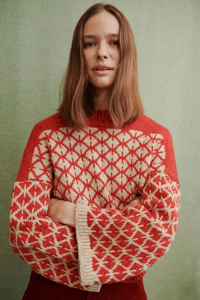 Aase sweater er designet til kollektionen Isager Achives 2024, i samarbejde med Isager.