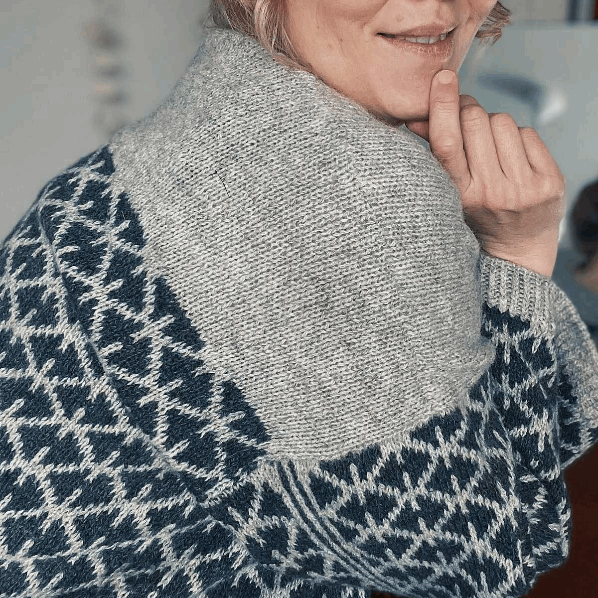 Du strikker genseren ovenfra og ned, i glattstrikk, og med europeisk skulderkonstruksjon. Først strikker du øverste del av bærestykke på bakstykket frem og tilbake. Deretter strikker du opp masker til forstykkene langs hver skulderlinje på bakstykket. Når øverste del av forstykkene er strikket, og halskanten formet, setter du dem sammen med bakstykket til bolen, og legger opp klippemasker i begge sider hvor for- og bakstykket møtes. Så strikker du rundt i mønstret etter diagram. Det er også en mulighet å strikke bærestykket frem og tilbake før du setter sammen til bolen. Bolen strikker du til den ønskede lengden, og avslutter med en vrangbord i vridd ribb. Klippemaskene på ermene sys og klippes opp. Deretter strikker du opp masker langs ermehullet, og strikker ermet rundt, ovenfra og ned. Til sist strikker du opp masker langs halsåpningen, og strikker en dobbel belegningskant og avslutter med en vrangbord i vridd ribb.
