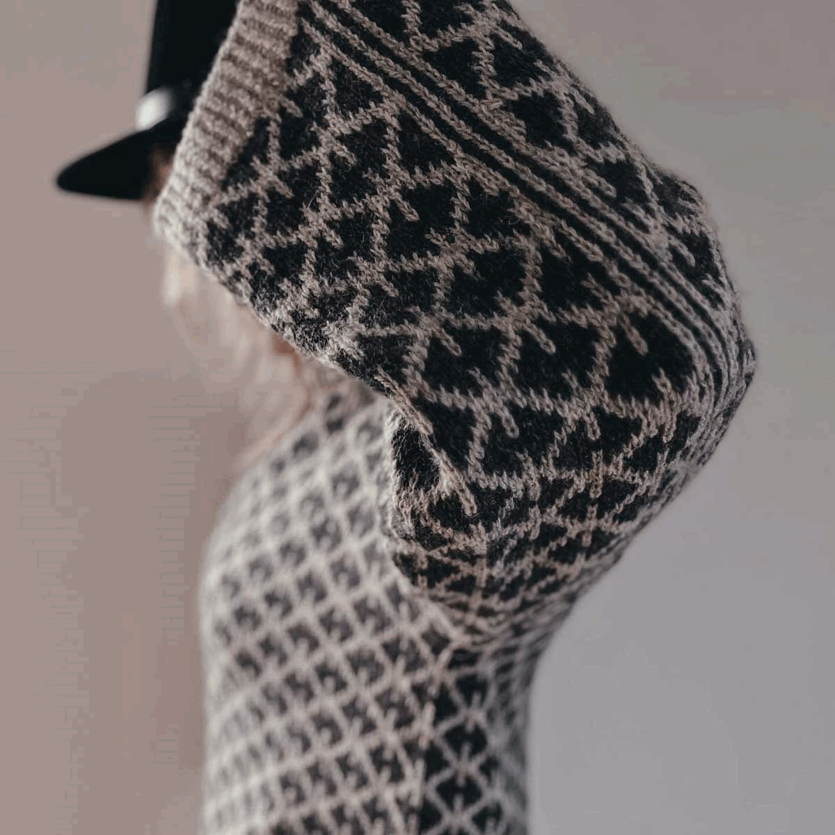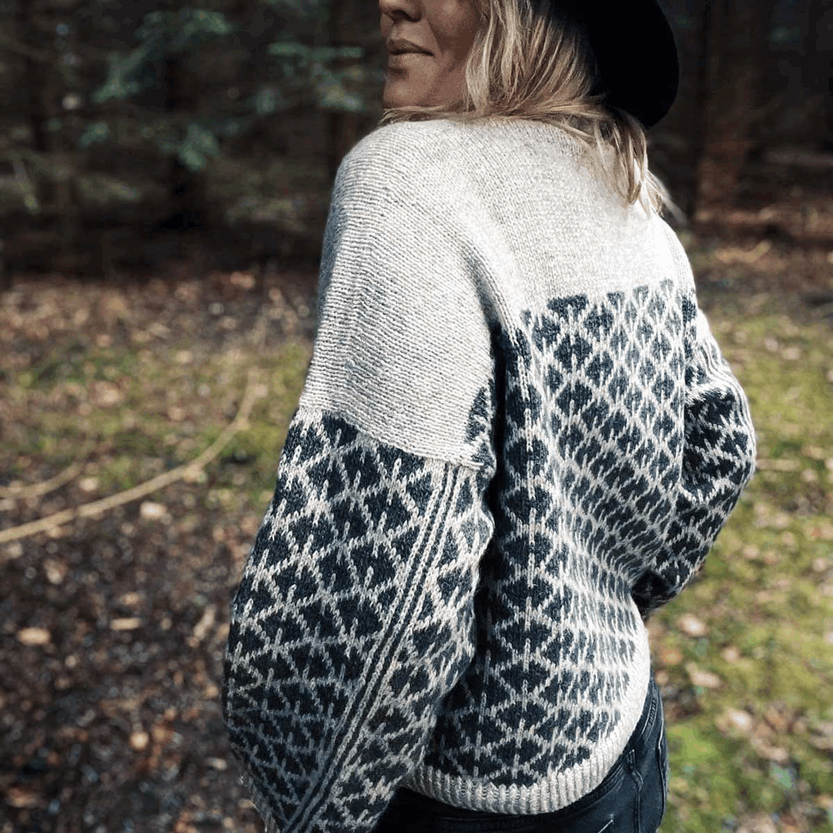 Aase sweater har et grafisk mønster, som med sine gentagelser skaber et stilrent og moderne nordisk look. Mønstret er inspireret af strikdesigner Åse Lund Jensens smukke mønster kaldet ”Skæl”, som oprindelig blev det brugt til et taskedesign. Åse skabte op igennem 50érne og 60érne en ikonisk stil omkring mønsterkombinationer og rytmiske indtagninger og udtagning i mønsterstrik. Detaljer der med stor respekt for det oprindelige er genskabt i en ny tid, i dette design.