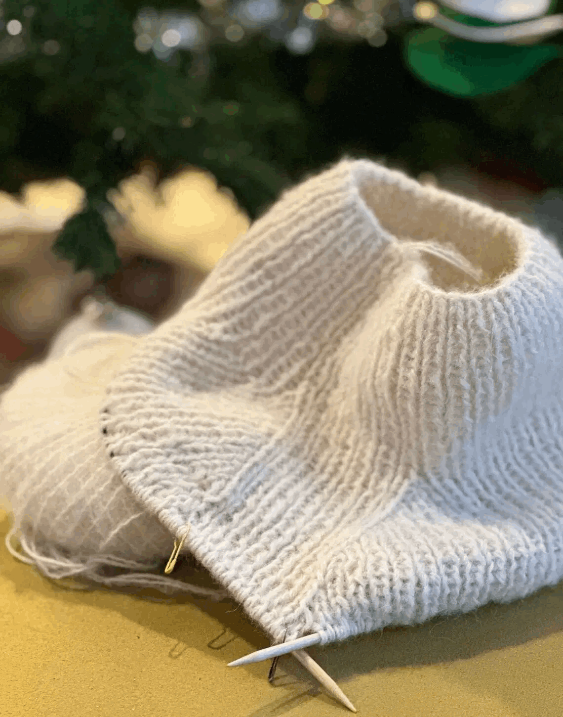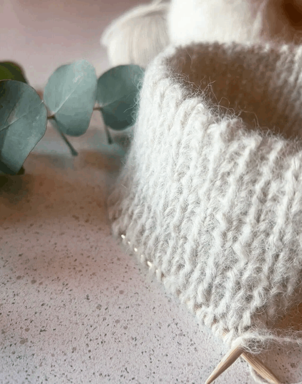 Relaxed ribbestrikk (før blokking): 24 masker / 22 rader