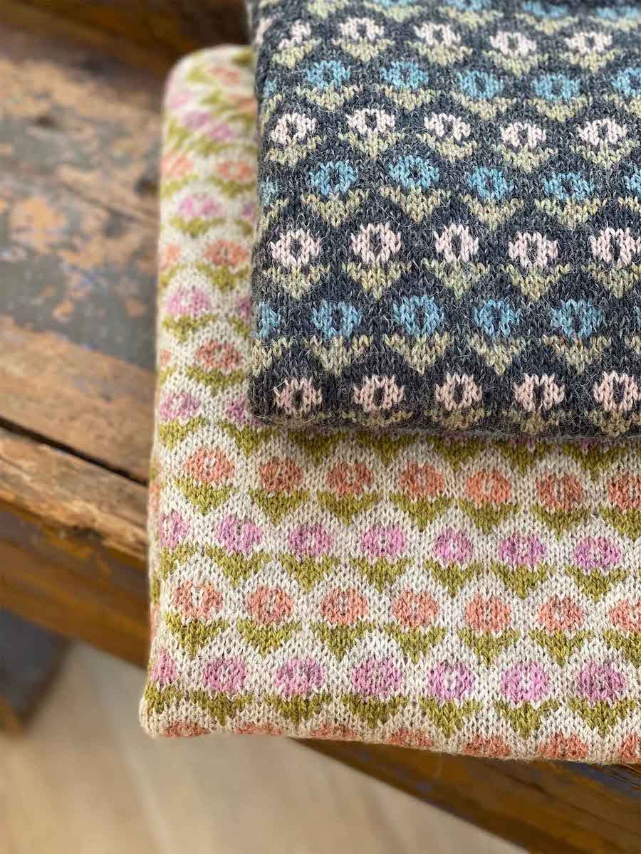 Marianne Isagers version af BLOMSTER er strikket i Isager Tvinni, en superlet og behagelig kvalitet at have på og uldkvaliteten er så god at den kan gå i arv i generationer.