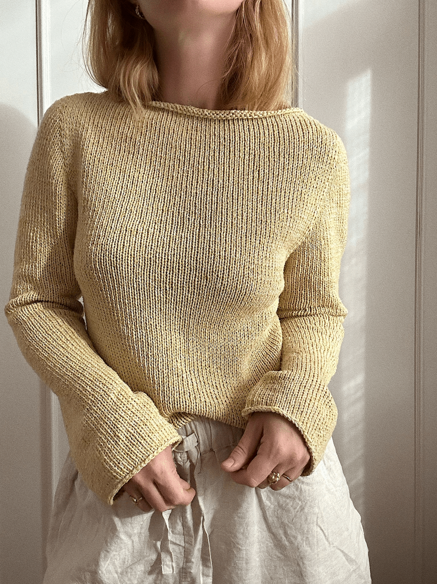 Blouse No. 1 er en enkel langermet bluse med båtutskjæring og kroppsnær passform.