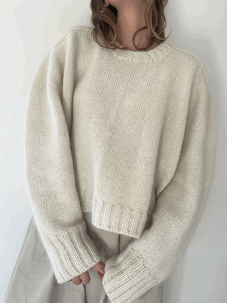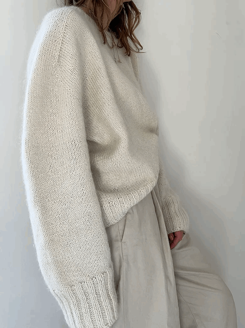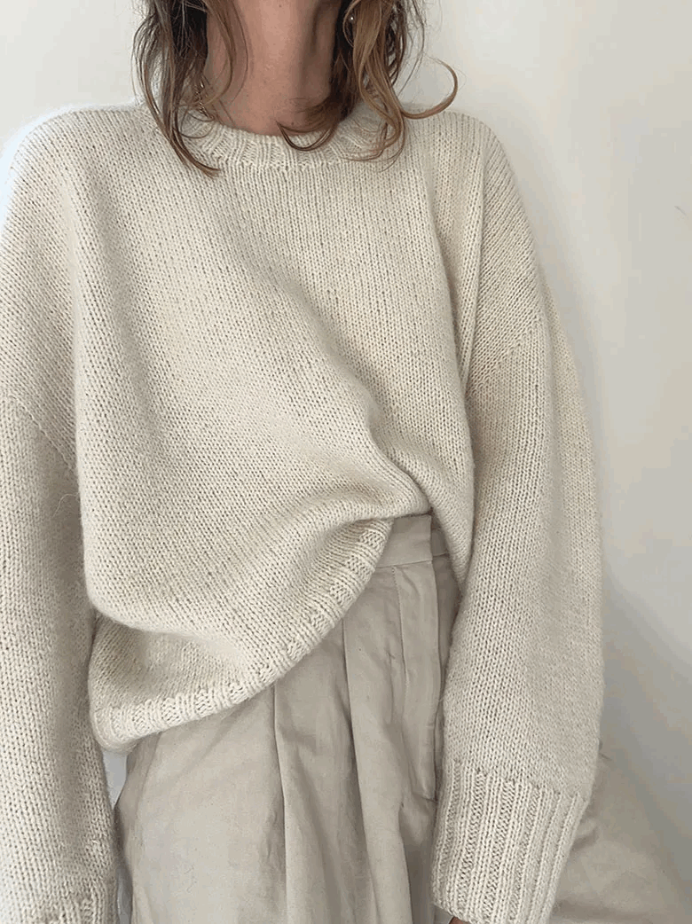 Du bør strikke en størrelse hvor overvidden er 25-45 cm større enn ditt eget brystmål, alt etter hvor oversize en sweater du ønsker.