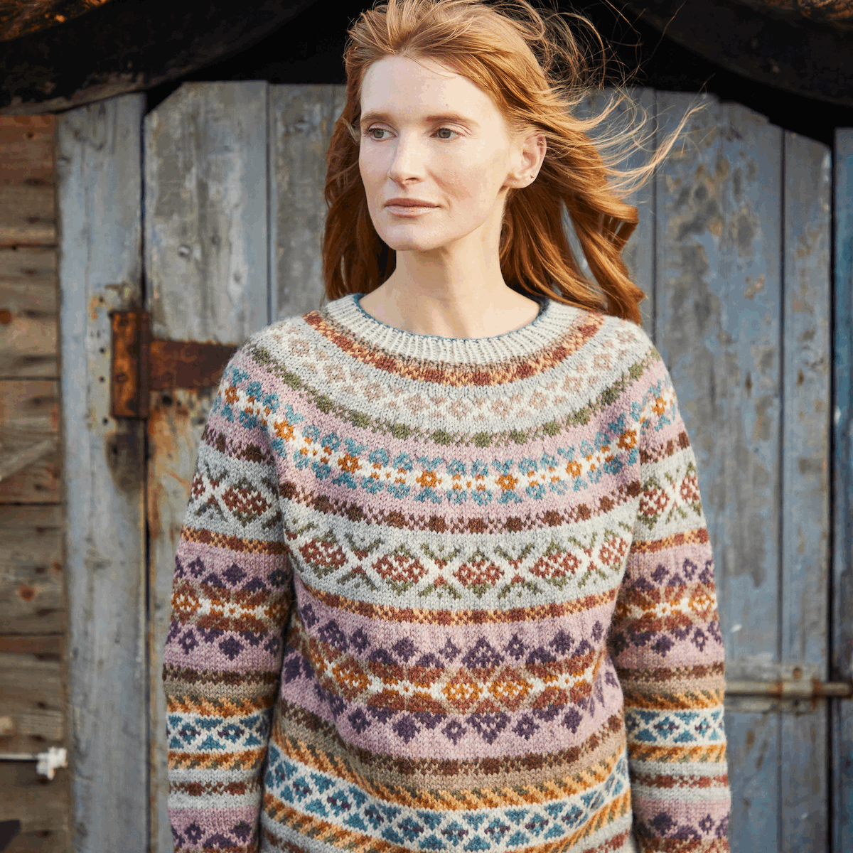 BRITISH BREEDS ARAN er det fantastiske nye tilskuddet til British Breeds-familien. Det har samme sammensetning og er nøyaktig dobbelt så tykt som det originale British Breeds-garnet. Dette nye garnet er perfekt for maskearbeid så vel som Fairisle-strikking. Melange-effekten i fargene bidrar til å produsere de vakre Fairisle-mønstrene som er synonymt med Marie Wallin-design. British Breeds Aran er et 100 % ullgarn blandet fra 4 forskjellige britiske saueraser og tilgjengelig i 12 farger i 50 g nøster.