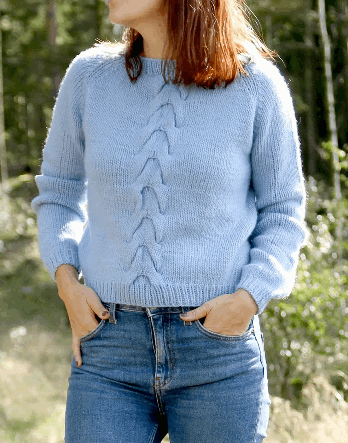 En kul kort genser med en ganske flat og enkel flette foran som pynter akkurat passe mye opp.
