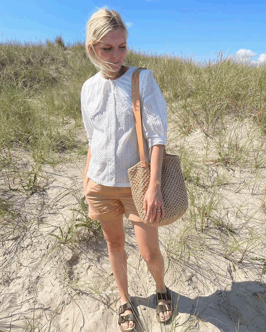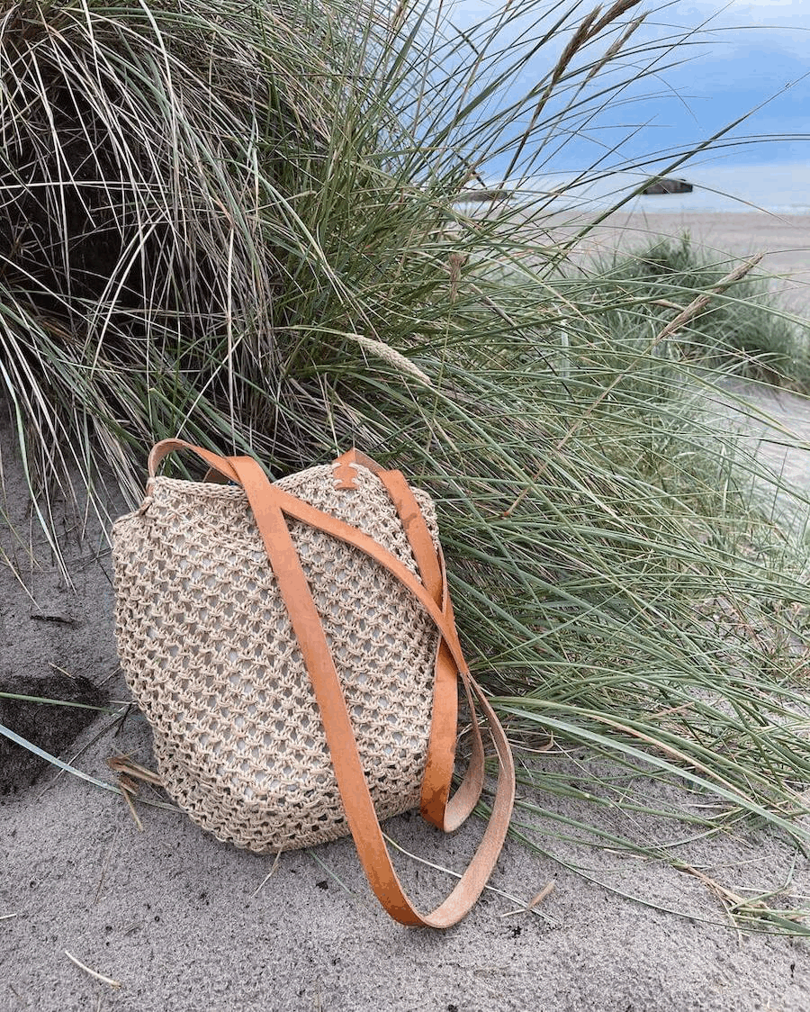 Den brune French Market Bag er strikket i Japansk Bomuld fra Isager i farge 59.