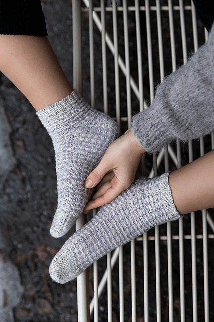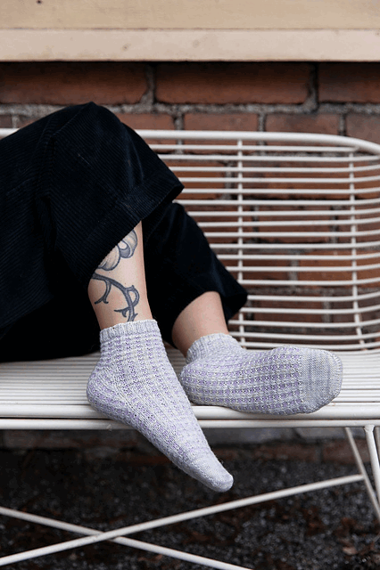 Gaufrette-sokken har en morsom, rynket struktur. Det minnet Alma Bali om de deilige Gaufres de Bruxelles, belgiske vafler - derav navnet.