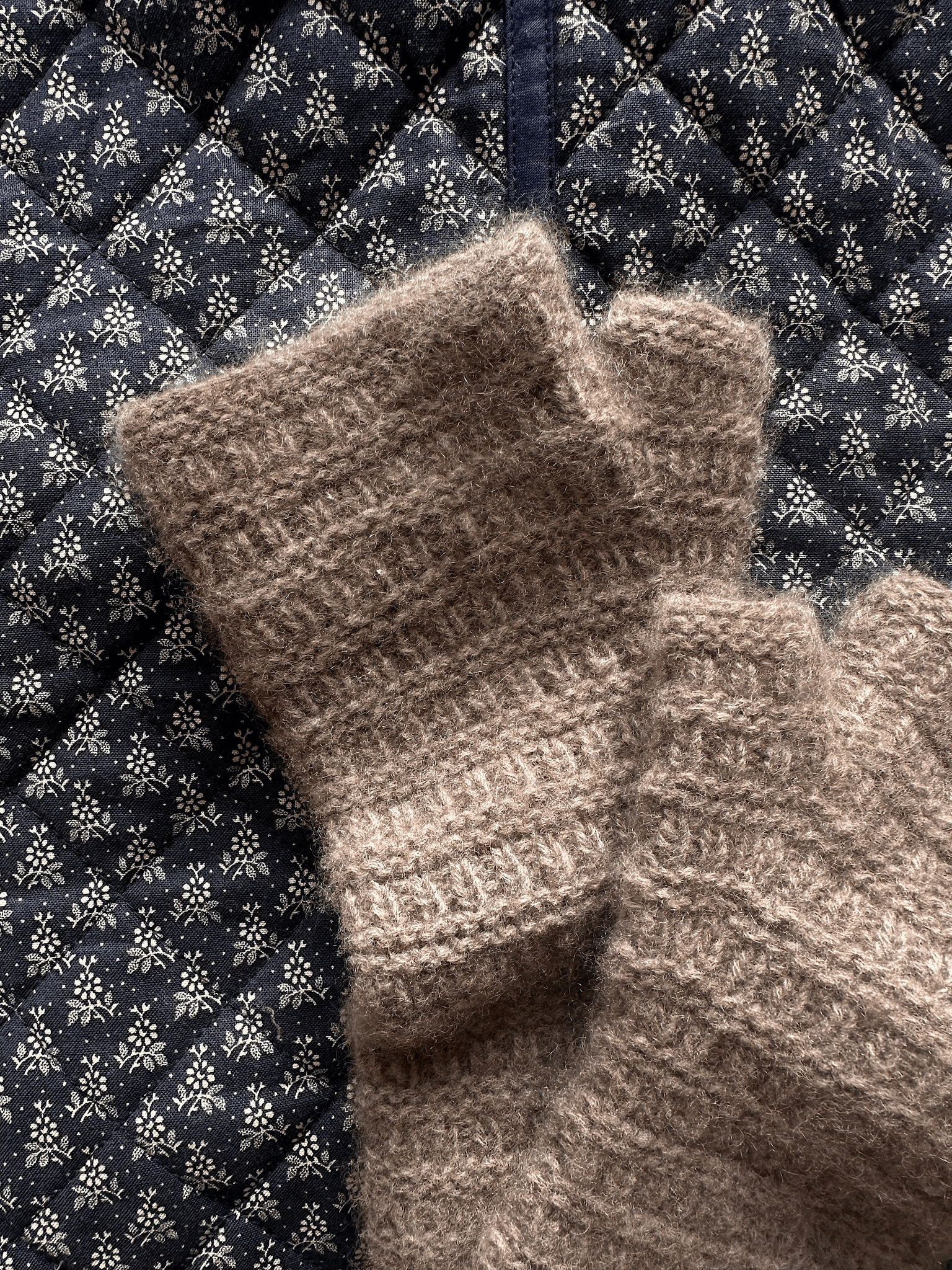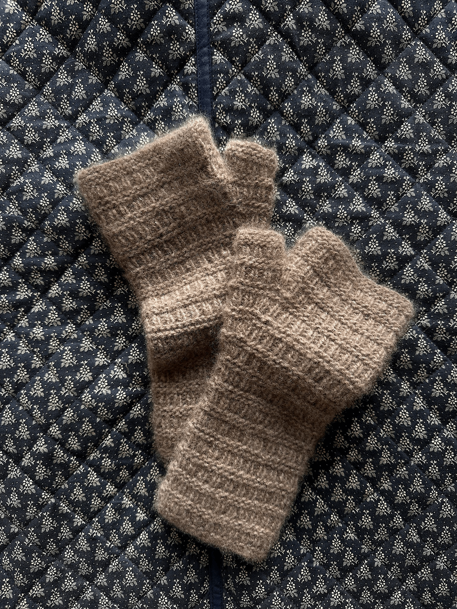 Gloves No. 1 er luksuriøse fingerløse vanter strikket i et enkelt strukturmønster.