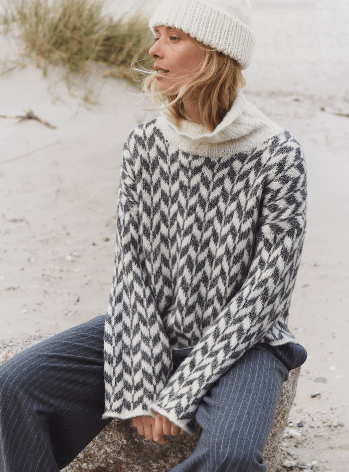 Du kan valgfritt endre farger selv, og legge til pinner. Oppskriften finnes KUN i heftet Nordic Knits No. 2 fra LANA GROSSA med norsk oversettelse. Dersom du allerede har heftet kan du krysse ut oppskiftsheftet når du velger størrelse.