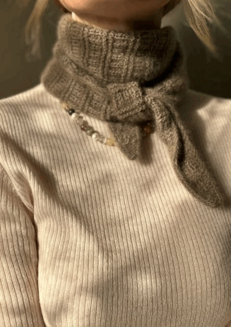 Scarf No. 4 er et luksuriøst strukturstrikket tørkle i cashmere. Størrelsen er tilpasset til å nå to ganger rundt halsen. Arbeidet strikkes sidelengs og formen dannes med fellinger og økninger.