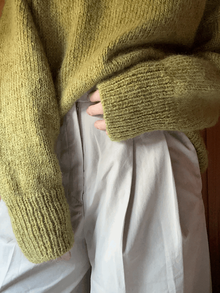 Sweater No. 25 har en oversized passform. Beregn en bevegelsesvidde på ca. 35-40 cm.
