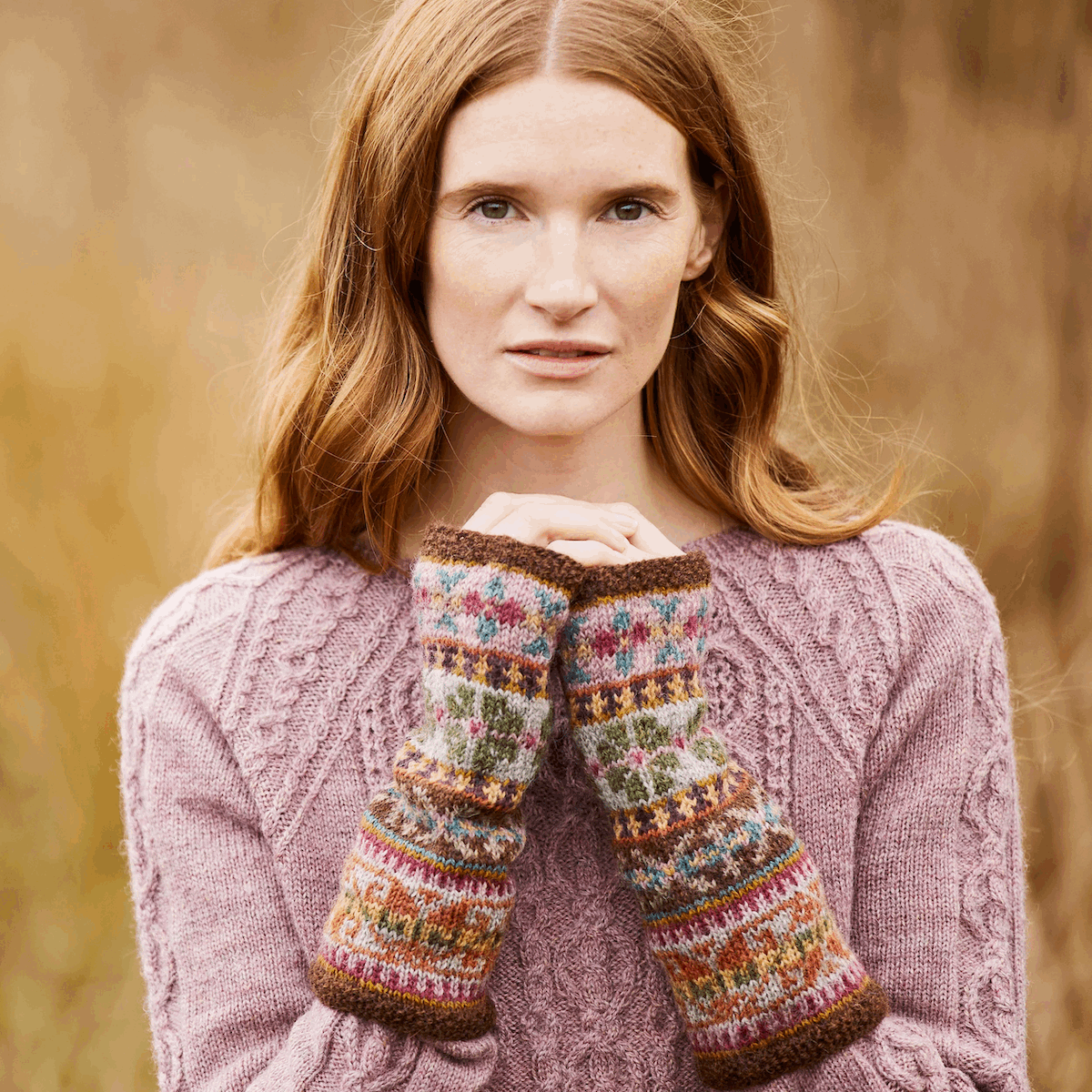 Strikkekitet inneholder BRITISH BREED garn og engelsk oppskrift. Diagram følger med. Pulsvarmerne kan enten strikkes frem og tilbake og videre sys sammen, eller de kan strikkes rundt på rundpinne eller strømpepinner. På grunn av hele 11 farger i oppskriften er det nok til to par pulsvarmere når du følger strikkefastheten som er anbefalt.