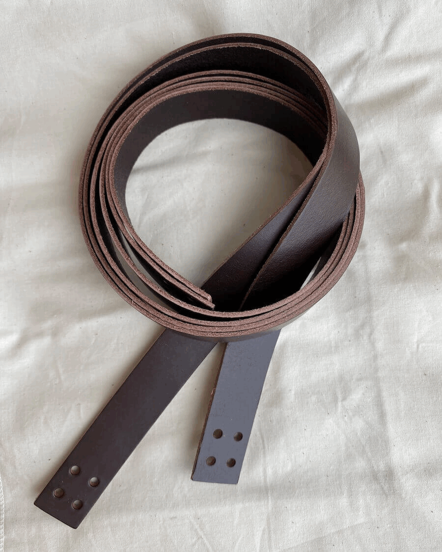 Stropper i kjernelær til French Market Bag. Stroppene vil patinere over tid og i bruk.