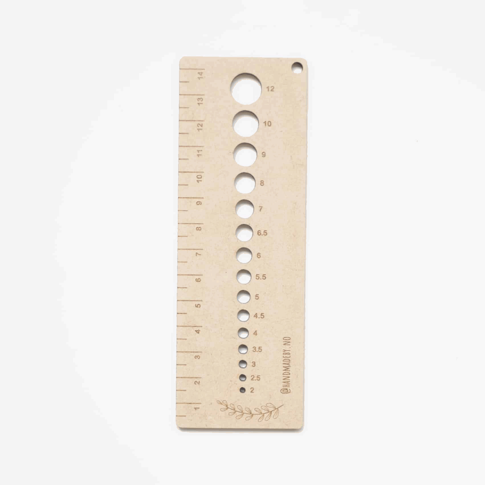 Strikkepinnemåleren er laserkuttet og håndpusset. Den er laget av naturmateriale, så svakheter og ujevntheter kan forekomme. Produsert i Norge.