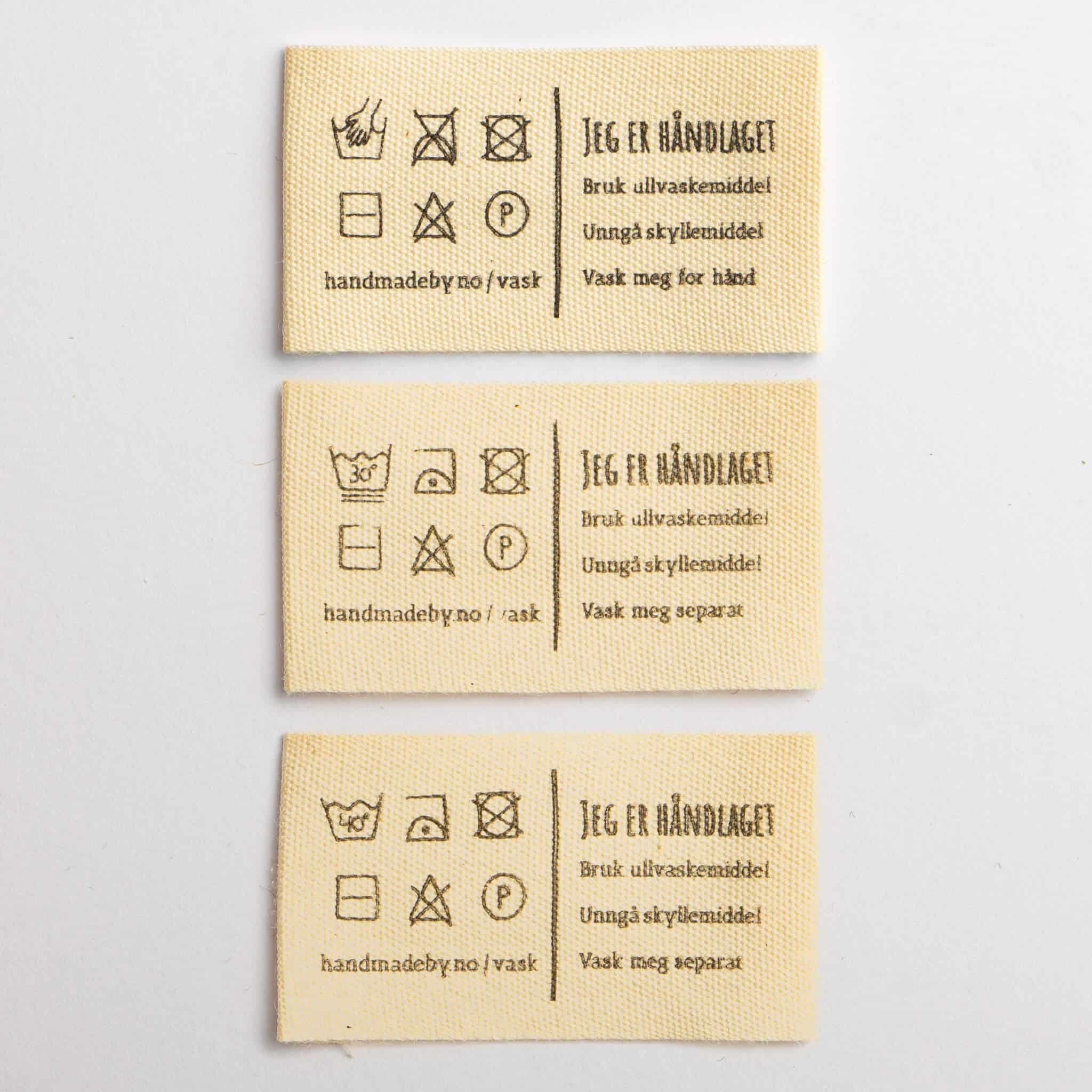 HANDMADE BY_ Vaskelapper med vaskeinstruks - 30 graders Ullvask.